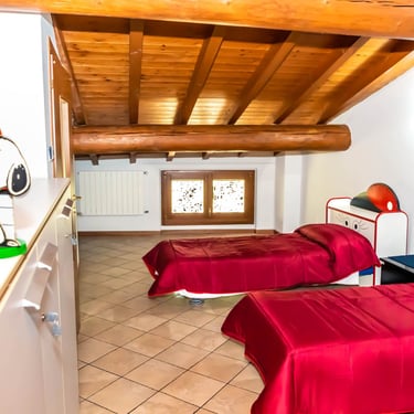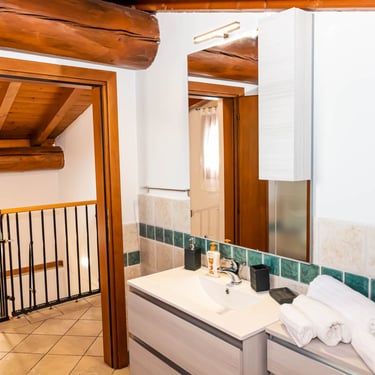 Sottotetto ampio (accesso tramite scala a chiocciola) con ulteriori due posti letto e bagno di servizio