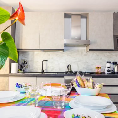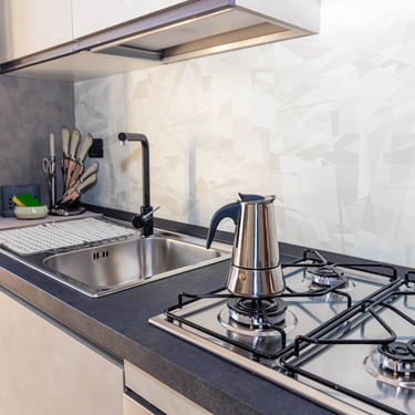 Angolo cottura completamente attrezzato, dotato di tutti gli elettrodomestici necessari