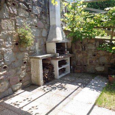 Area esterna attrezzata con tavolo, sedie e barbecue, ideale per momenti di relax all’aperto