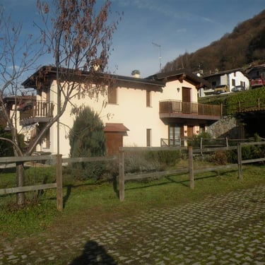 L’immobile è un villino indipendente, finemente ristrutturato e curato nei dettagli, con travi a vista, stufa a pellet, spazi esterni privati e una vista mozzafiato tra lago e valle.