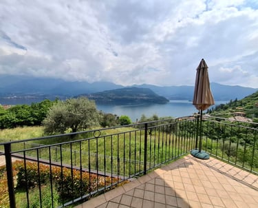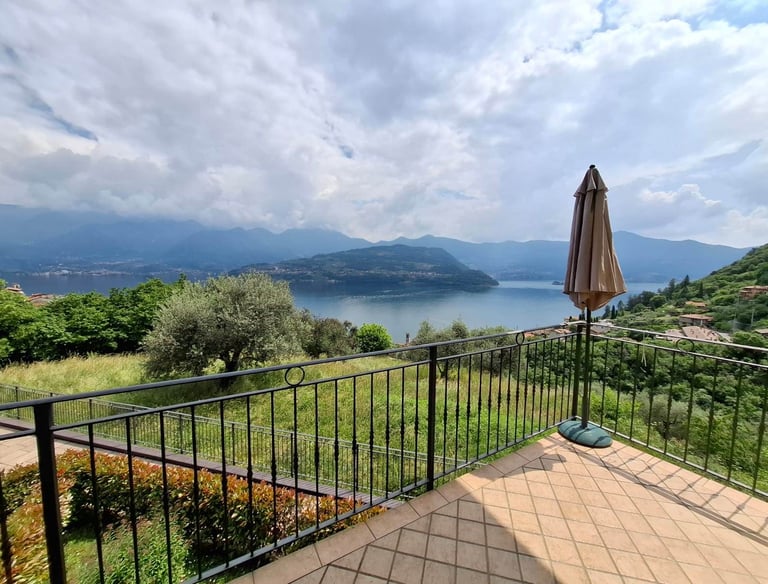 Appartamento panoramico a pochi passi dal Lago d’Iseo, con ampi spazi, tre camere, doppi servizi e balconi vista lago. Completamente attrezzato, ideale per soggiorni brevi. Box doppio.