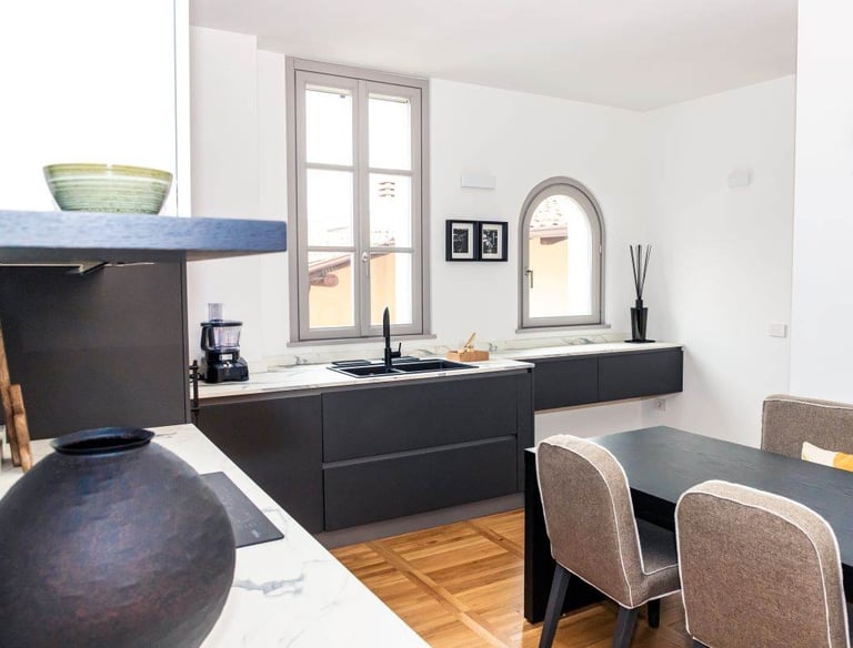 Elegante appartamento ad Erbusco, completamente ristrutturato e disposto su due livelli. Ampia zona giorno con angolo cottura attrezzato, due camere, bagno, oltre a sottotetto abitabile con ulteriori posti letto. Ascensore con accesso diretto e ingresso indipendente