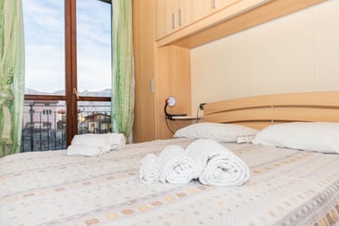 Camera matrimoniale con armadio a ponte, letto matrimoniale e balcone privato